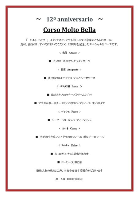 ☆おかげさまで12周年! 10月・11月は12周年を記念したコースなどご用意いたしました。